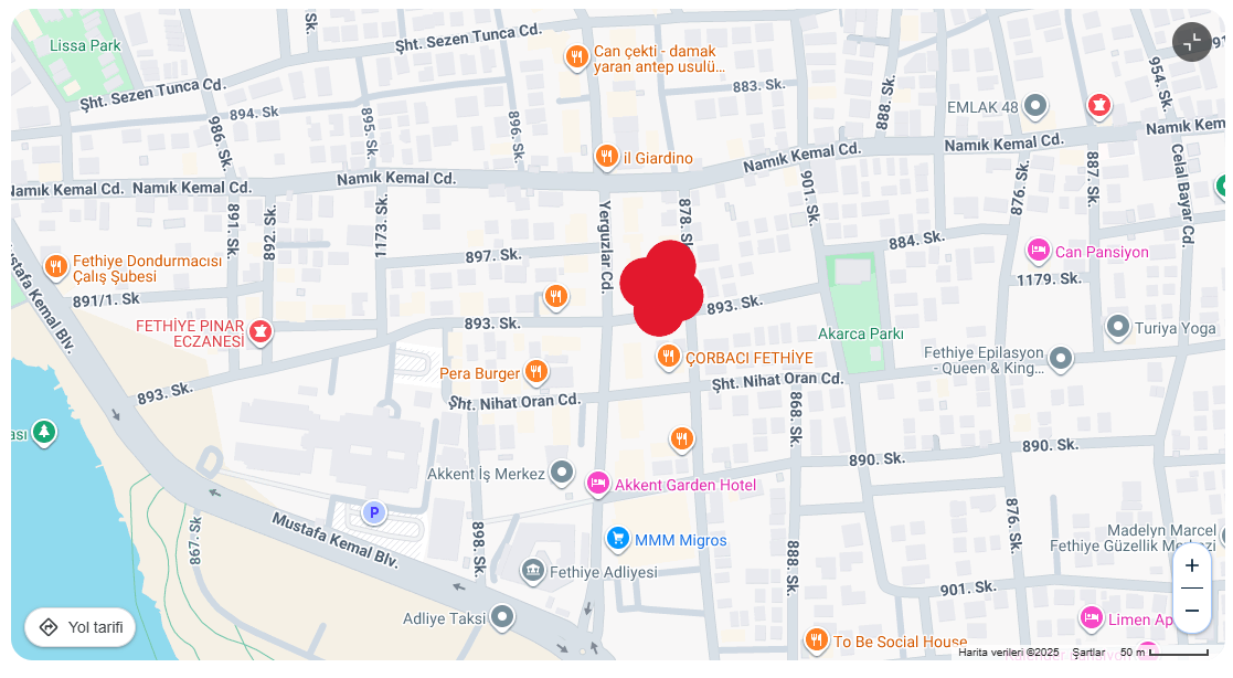 Adres: Akarca Mahallesi Yerguzlar Caddesi no:18/5 Fethiye/ MUĞLA